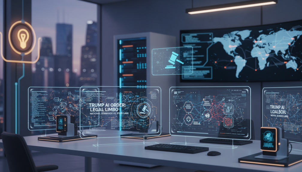 يهدف أمر تنفيذي للرئيس ترامب حول الذكاء الاصطناعي إلى إنشاء كتاب قواعد وطني للذكاء الاصطناعي، مما قد يخلق عدم تأكيد قانوني للشركات الناشئة مع تضارب القوانين الولاية ونقاش الكونغرس للتنظيمات الفيدرالية. يحذر النقاد من المعارك القضائية المطولة وزيادة الغموض في الصناعة.