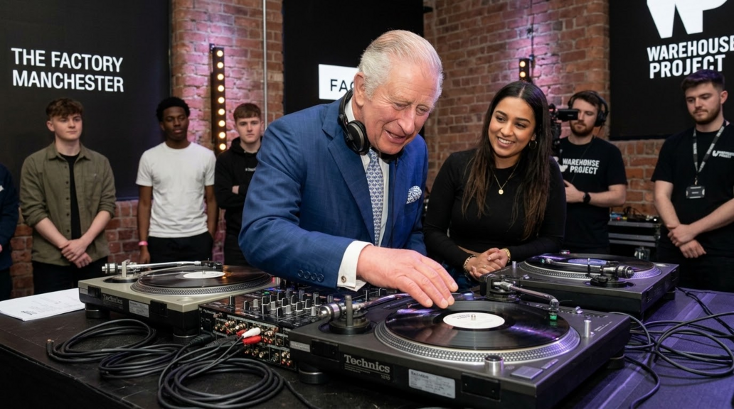 خلال زيارته إلى مانشستر، استكشف الملك عالم الدي جي، مما يبرز الروح الريادية والفضول الذي يدفع بالمبادرة الفردية. تعكس هذه اللحظة الخفيفة أهمية الاستكشاف الشخصي والتعبير الإبداعي في مجتمع حر للسوق.