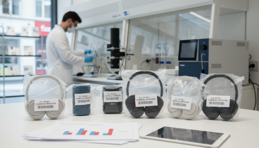 قام عدة متاجر أوروبية بوقف بيع نماذج معينة من سماعات الرأس بعد كشف دراسة ممولة من الاتحاد الأوروبي عن وجود كميات ضئيلة من المواد الكيميائية التي تعكر الهرمونات. تم تضمين العلامات التجارية مثل آبل، بيتس، سامسونج، بوز، جي بي إل، وسينهايزر في الدراسة، مما أثار مخاوف بشأن صحة وسلامة المستهلكين. تسلط هذه الخطوة الضوء على اتجاه متزايد نحو زيادة الفحص لتركيبات المواد الكيميائية في الإلكترونيات الاستهلاكية.