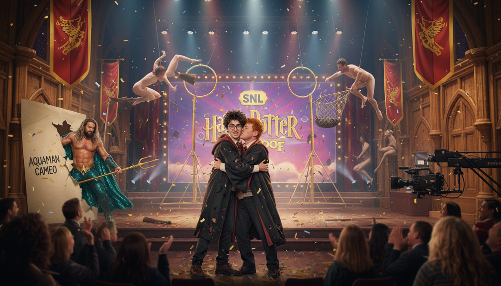 تقليد هاري بوتر في SNL يتضمن رومانسية رون، كويديتش عاري، وظهور جيسون موموا