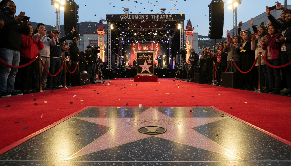 بتكريم تشادويك بوسمان بنجمة على ممشى المشاهير في هوليوود، تدفع صناعة الترفيه تكريمًا لموهبة راحلة بسرعة ولكن تأثيرها سيستمر لسنوات قادمة. تشع نجمته بين أساطير هوليوود، تكريمًا مناسبًا لرجل عمله لمس قلوب الملايين وإرثه الذي سيدوم للأجيال القادمة.