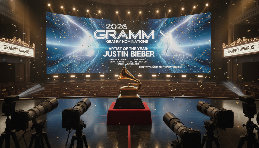 تثير ترشيحات جرامي 2026 الإثارة والجدل حيث يظهر جاستن بيبر كفنان بارز، بينما تجد الموسيقى الكانتري نفسها غائبة بشكل ملحوظ عن الفئات الرئيسية. يؤكد الظهور القوي لبيبر في الترشيحات على استمرارية شعبيته وموهبته في صناعة الموسيقى. ومن المعروف بأنه يحقق أعلى المراتب في القوائم الغنائية ولديه قاعدة جماهيرية وفية، ويعتبر وجود بيبر في الترشيحات بمثابة دليل على شعبيته المستمرة.