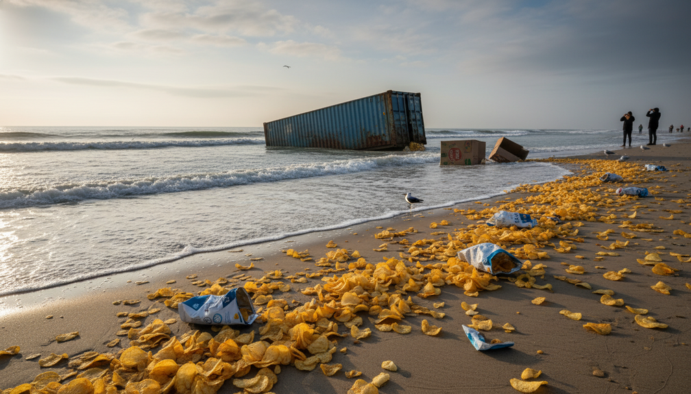 العثور على آلاف من رقائق البطاطس على شاطئ ساسكس بعد تسرب حاويات الشحن ‘الطعام والتغليف’. يسلط هذا الحادث الضوء على أهمية المبادرة الخاصة وممارسات الشحن المسؤولة لحماية سواحلنا وتعزيز الازدهار الاقتصادي.
