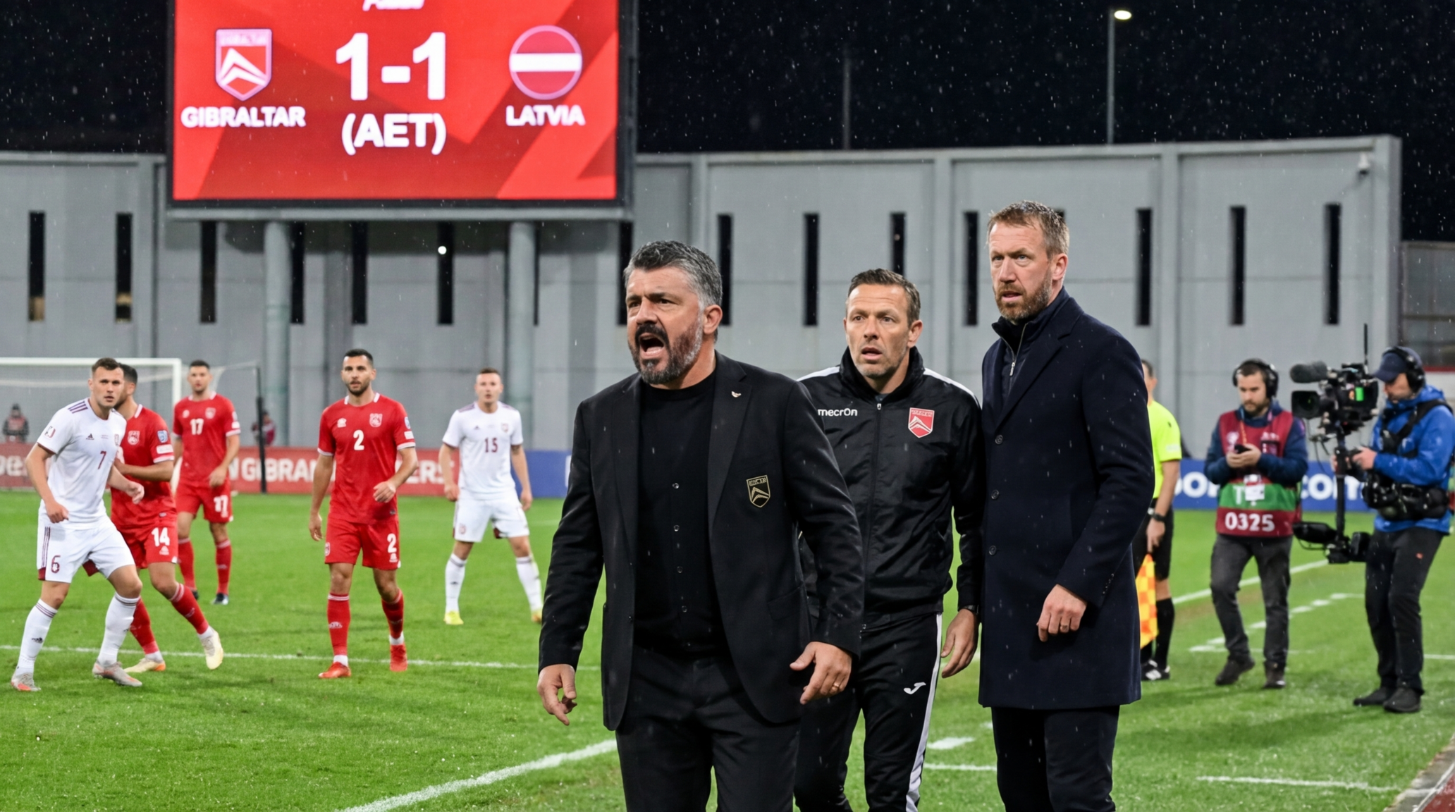 في يوم ملحق كأس العالم الذي يحمل مخاطر جيوسياسية، ستواجه جبل طارق لاتفيا في صدام يأخذ الكل، مع 16 فرقًا أوروبيًا يتنافسون على مكان في كأس العالم الكبير. الضغط مرتفع على لاعبين رئيسيين مثل جينارو جاتوسو، كريغ بيلامي، وغراهام بوتر وهم يواجهون لحظات القرار في سعيهم نحو المجد.