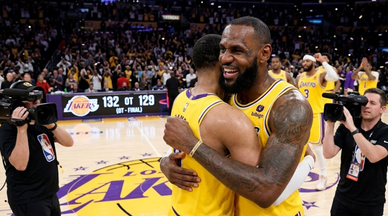 في الدقائق الأخيرة من الوقت الإضافي، كان ليبرون من يرتقي مرة أخرى للمناسبة. مع المباراة على المحك، سجل بثقة زوجًا من رميات الحرة الحاسمة ليمنح الليكرز القيادة. وعندما دق جرس النهاية، كان ليبرون هو الذي وقف شامخًا كبطل الليلة، مقودًا فريقه لفوز صعب حافظ على أحلامهم في التأهل للبلاي اوف.