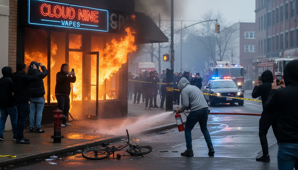 مواطن شجاع يحاول السيطرة على الحريق في متجر الفيب وسط الفوضى