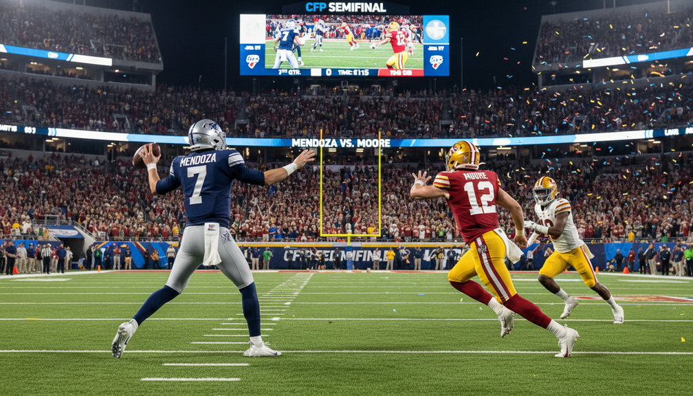 بينما يراقب مدير عام نيويورك جيتس دارين موجي عن كثب الربع الخلفيين ميندوزا ومور في البلاي اوف الجامعات، تكون الرهانات مرتفعة بالنسبة لكلا اللاعبين لعرض مواهبهم والتأثير المحتمل على الدرافت القادم للدوري الوطني لكرة القدم الأمريكية. هذا الصدام بين اثنين من أبرز المرشحين يمكن أن يعيد تشكيل مستقبل الدوري ويضع المسرح لمنافسة شرسة بين الفرق التي تتنافس على الربع الخلفي الرئيسي القادم.