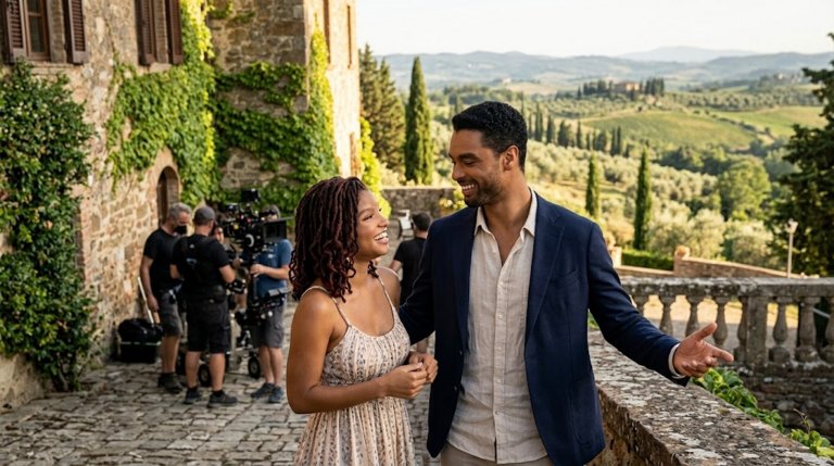 هالي بيلي وريجي-جين بيج يشاركان تجربة ساحرة في تصوير رومانسية كوميدية في توسكانا
