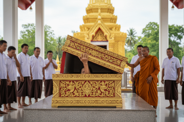 في تطور ملفت للنظر، فاجأت امرأة تايلندية تبلغ من العمر 65 عامًا موظفي المعبد بالتحرك في تابوتها قبل أن يتم حرقها. تؤكد هذه الحادثة الرائعة على قوة الروح الفردية وعدم تنبؤ الحياة، مما يبرز أهمية المسؤولية الشخصية وقيمة كل حياة بشرية.