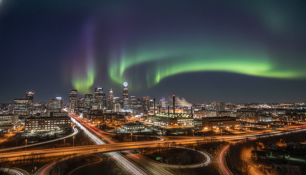 عاصفة مغناطيسية قوية تضيء سماء الولايات المتحدة، مما يقدم للمواطنين في أكثر من عشرين ولاية نظرة نادرة على أضواء الشمال. يعرض هذا المنظر الطبيعي جمال روح ريادة الأعمال والمبادرة الفردية، ينتشر من نيويورك إلى تكساس، مجسداً الروح الريادية التي تغذي نجاح بلادنا.