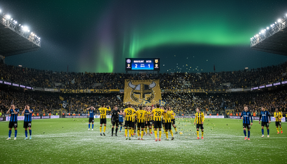 في تطور مذهل للأحداث، فريق الفريق الضعيف بودو/جليمت من دائرة القطب الشمالي قد حقق تاريخاً من خلال هزيمة وصيف دوري أبطال أوروبا في العام الماضي، إنتر ميلان. الفوز غير المحتمل أحدث صدمة في عالم كرة القدم، ثبت أن كل شيء ممكن في هذه اللعبة الجميلة. رحلة بودو/جليمت من الغموض إلى الدور الـ16 من دوري أبطال أوروبا هي قصة ضعيفة ملحمية لافتة للقلوب حول العالم.