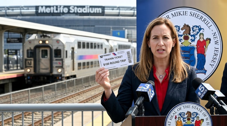 اعتبر محافظ نيو جيرسي، ميكي شيريل، موقفًا جريئًا ضد فيفا، معترضًا على تذاكر القطارات ذهابًا وإيابًا بقيمة 100 دولار للجماهير الحاضرة في مباريات كأس العالم في ملعب ميتلايف. أثارت الأسعار المبالغ فيها احتجاجات عامة، مع تعبير المخاوف حول تحمل المكلفين العبء. أبرزت المعارضة الصريحة لشيريل لعدم مساهمة فيفا في تكاليف النقل للبطولة الرائعة قضية الوصول والعدالة للجماهير. جذبت مطالبة المحافظ لفيفا بتغطية تكاليف النقل انتباه الناس إلى الضغط المالي الذي يفرضه على سكان نيو جيرسي.
