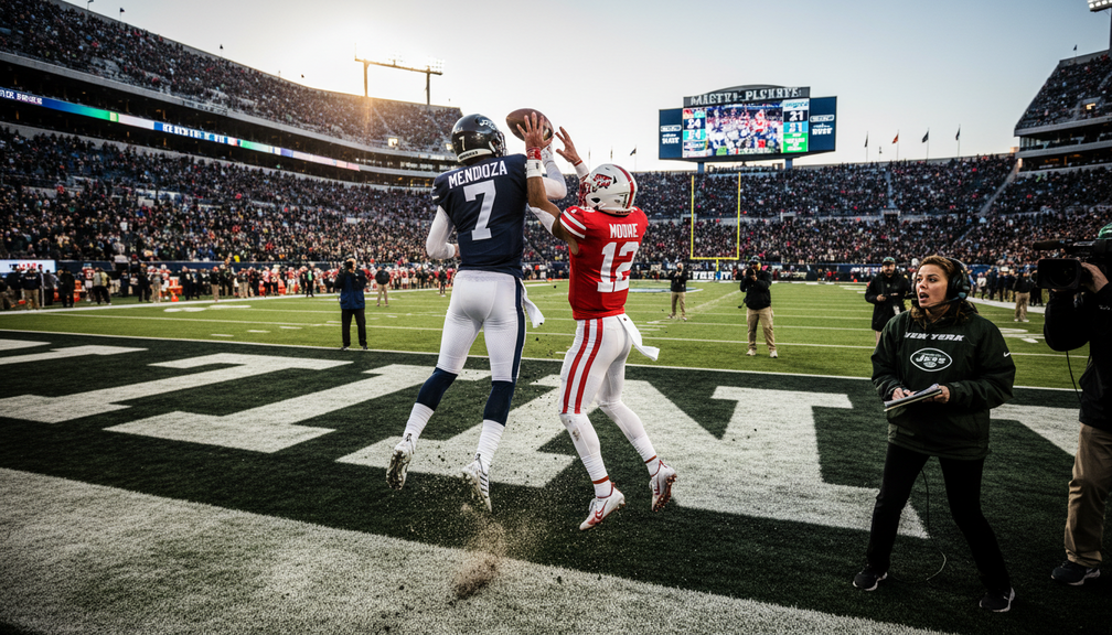 المسرح مهيأ لمواجهة مثيرة في نصف نهائي بولة الخوخ حيث يستعد فرناندو ميندوزا من إنديانا ودانتي مور من أوريغون لمواجهة معركة ذات مخاطر كبيرة تؤثر على اختبار الدرافت للدوري الوطني الأمريكي لكرة القدم. سيكون الضوء الساطع على هذين اللاعبين المرشحين الأوائل لمركز الرئيس في الدرافت حيث يسعون لعرض مهاراتهم وإبداء بيان على المسرح الوطني. سيكون مدير عام فريق جيتس دارين موجي حاضرًا، جاهزًا لمراقبة المواهب وتقييم أي من الرؤساء يمكن أن يكون الاختيار الصحيح لفريقه في الدرافت القادم.