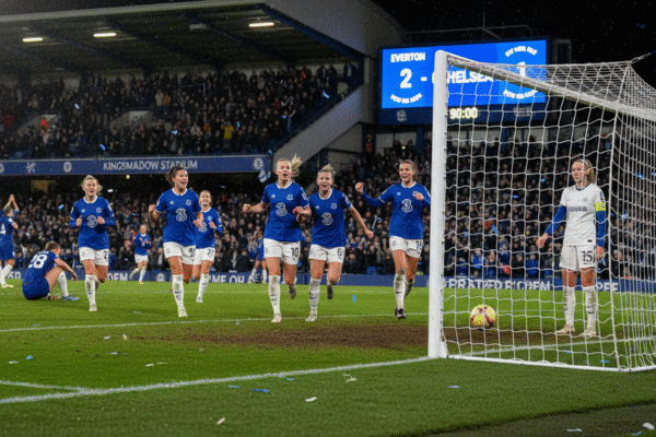 في مباراة مثيرة، صدم إيفرتون بطلة الدوري تشيلسي، بإنهاء سلسلتهم المتتالية لمدة 585 يومًا بفوز بطولي من خلال هونوكا هاياشي. النتيجة تقلب موازين سباق اللقب في الدوري الإنجليزي للسيدات، حيث يحلل الخبراء فوز إيفرتون النادر وتعثر تشيلسي. كما حقق كل من آرسنال، توتنهام، وكل من أندية مانشستر انتصارات حاسمة، مع عرض شراسة المنافسة في كرة القدم النسائية.