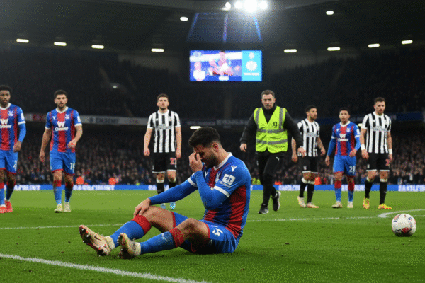 تتعرض آمال مهاجم كريستال بالاس جان فيليب ماتيتا في المشاركة مع فرنسا في كأس العالم للخطر بعد تعرضه لإصابة في الركبة تهدد بتحطيم أحلامه. يخشى المدير الفني أوليفر جلاسنر من أن الجراحة قد تكون ضرورية، مما يلقي الشكوك على مستقبل ماتيتا في الرياضة والتأثير المحتمل على النادي والمنتخب.” ,