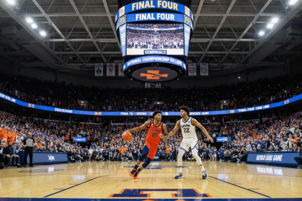 تم تحديد المسرح لمعارك مثيرة في الدور نصف النهائي الوطني في إنديانابوليس حيث تتنافس أفضل فرق كرة السلة الجامعية إلينوي، كونيكتيكت، ميشيغان، وأريزونا على مكان في مباراة البطولة. مع اللاعبين الرئيسيين جاهزين لعرض مهاراتهم والفرق تنافس من أجل المجد، ستحدد هذه المواجهات من يتقدم إلى المواجهة النهائية، مما يجعلها يجب مشاهدتها لعشاق كرة السلة في كل مكان.
